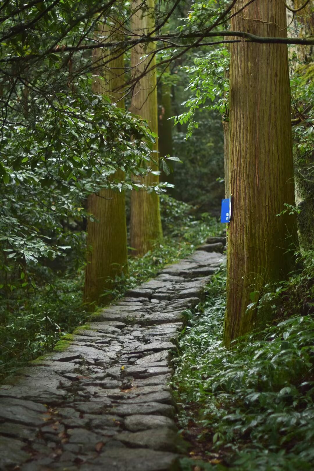 沿着青苔斑驳的石阶深入山林,