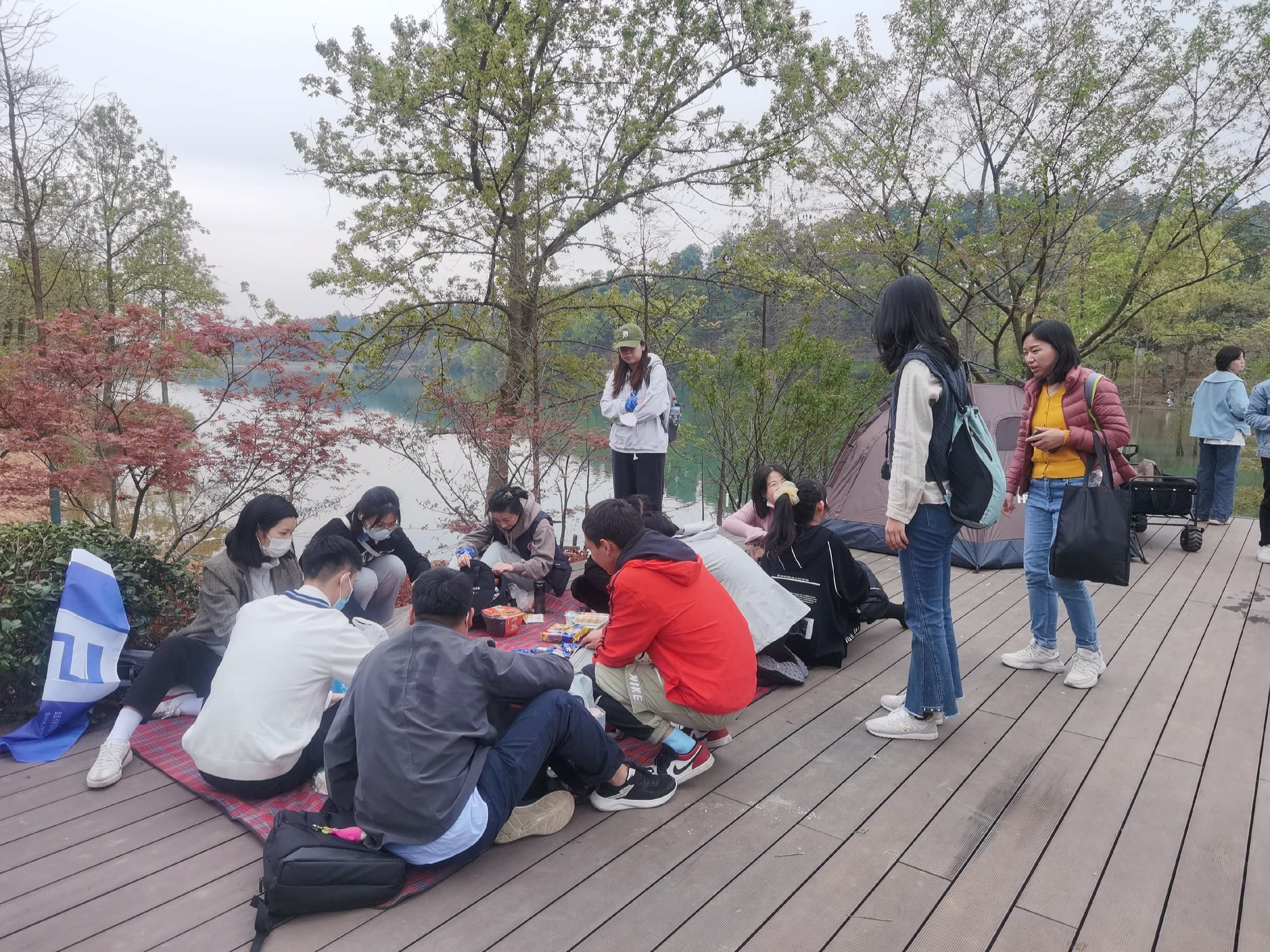 摊开野餐垫,围坐在一起