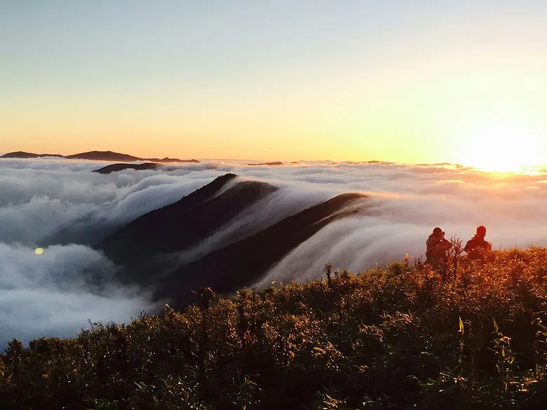 如果前一天水汽比较足,那么第二天早上看到云海的机率将会大大增加,站在山顶眺望远方,云海翻腾,似乎整个世界都在自己的脚下,那种场景甚是壮观。