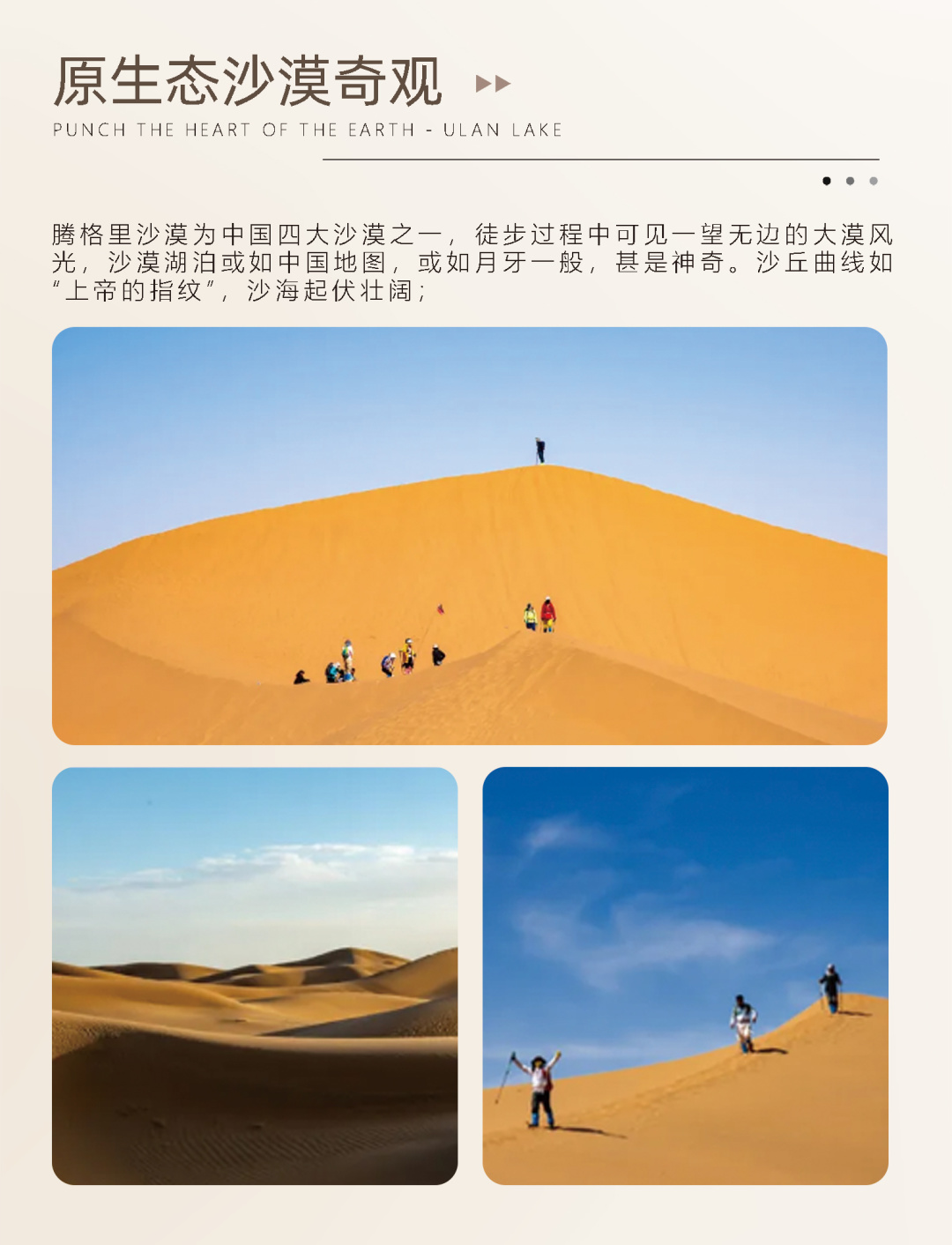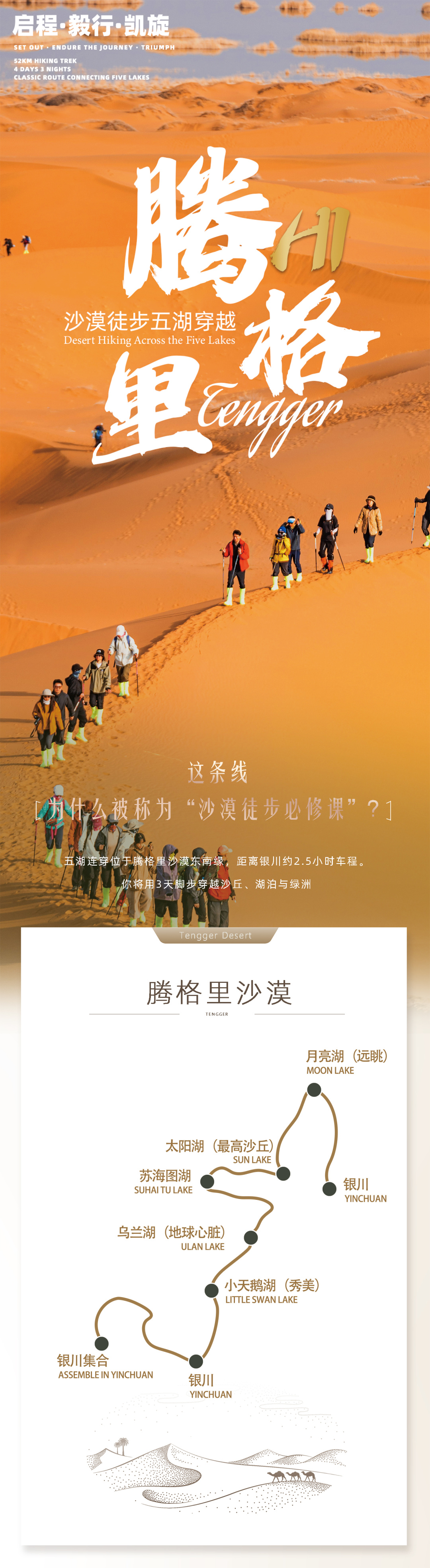 01 此腾格里徒步活动不同于传统旅游线路,对参加队员的安全、环保和团队协作精神要求较高,要求体现中华传统美德。全程徒步过程中,严禁丢弃任何不可降解垃圾,组委会提供大型编织袋垃圾袋,所有垃圾请归拢至垃圾袋,由物资车统一运出沙漠。